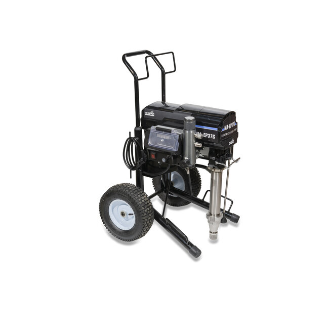 De EP37 airless pomp op trolley is een krachtige elektrische membraanpomp voor professionele airless toepassingen met een hoge materiaaldoorvoer. Binnen de EP-pompfamilie is de EP37 het krachtigste model en vormt de schakel tussen de EP-serie en de grotere A-systemen.
