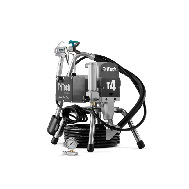De Tritech T4 is een elektrische airless plunjerpomp en geschikt voor het verspuiten van viscose coatings. Tritech staat bekend om zijn fantastische prijs/kwaliteit verhouding.